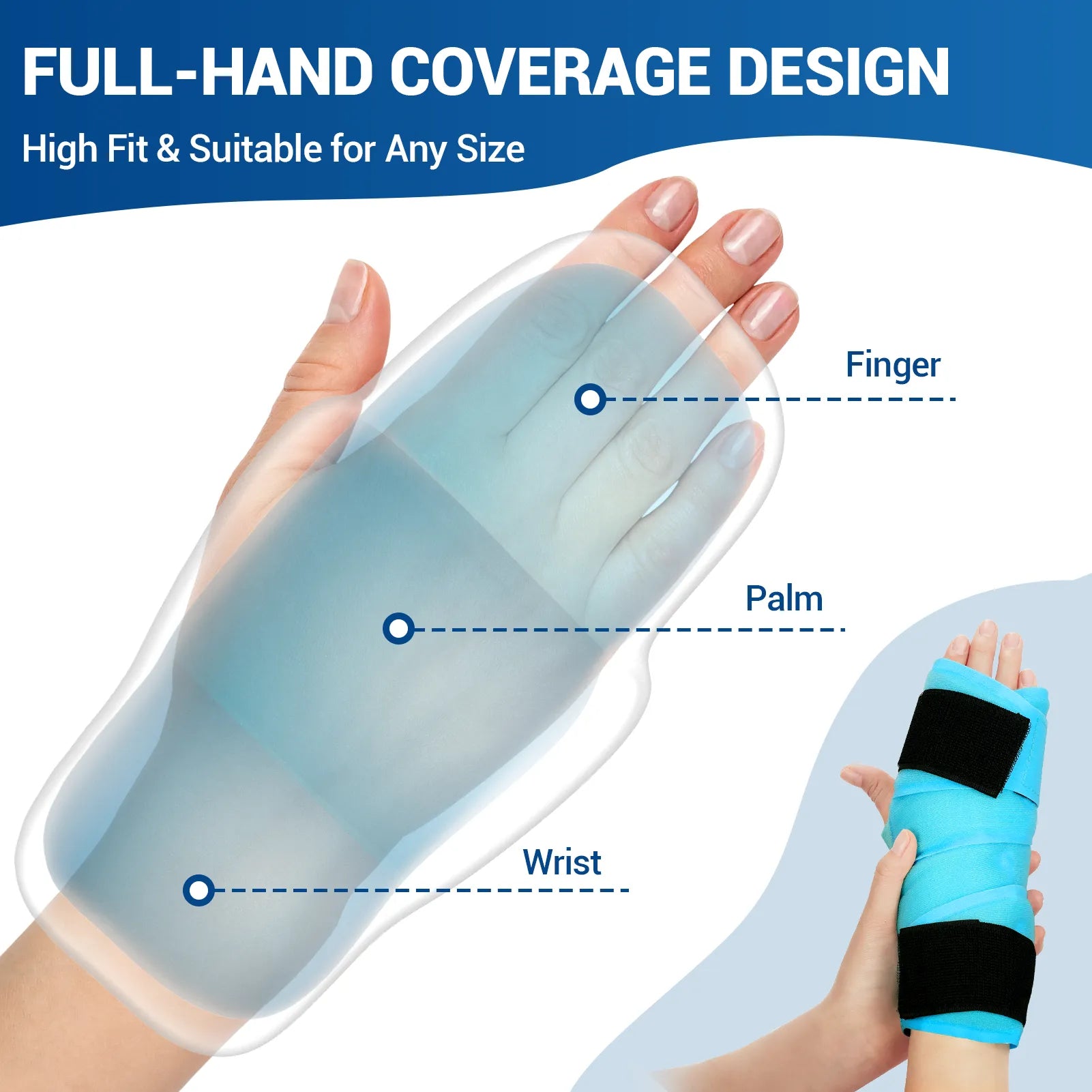 ćFull Coverage Hand & WristćThe integrated design requires no additional parts. The extended and thickened gel hand ice pack covers almost the entire hand and wrist joint. Adjustable nylon straps allow you to freely adjust the pressure for optimal contact with your skin, providing deeper cooling or heating therapy. It fits perfectly with any hand size, offering the best comfort and support.