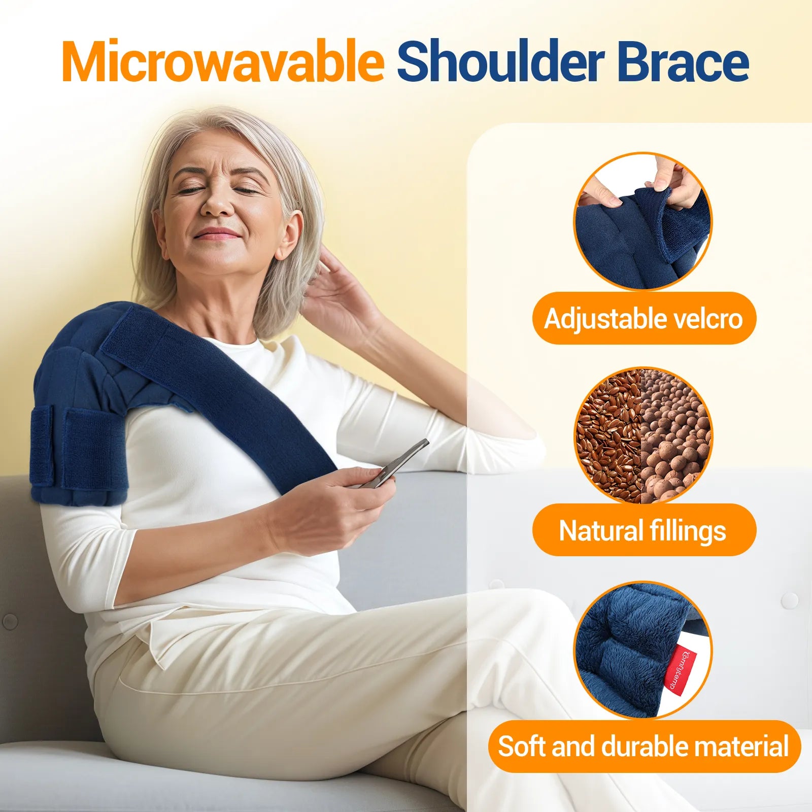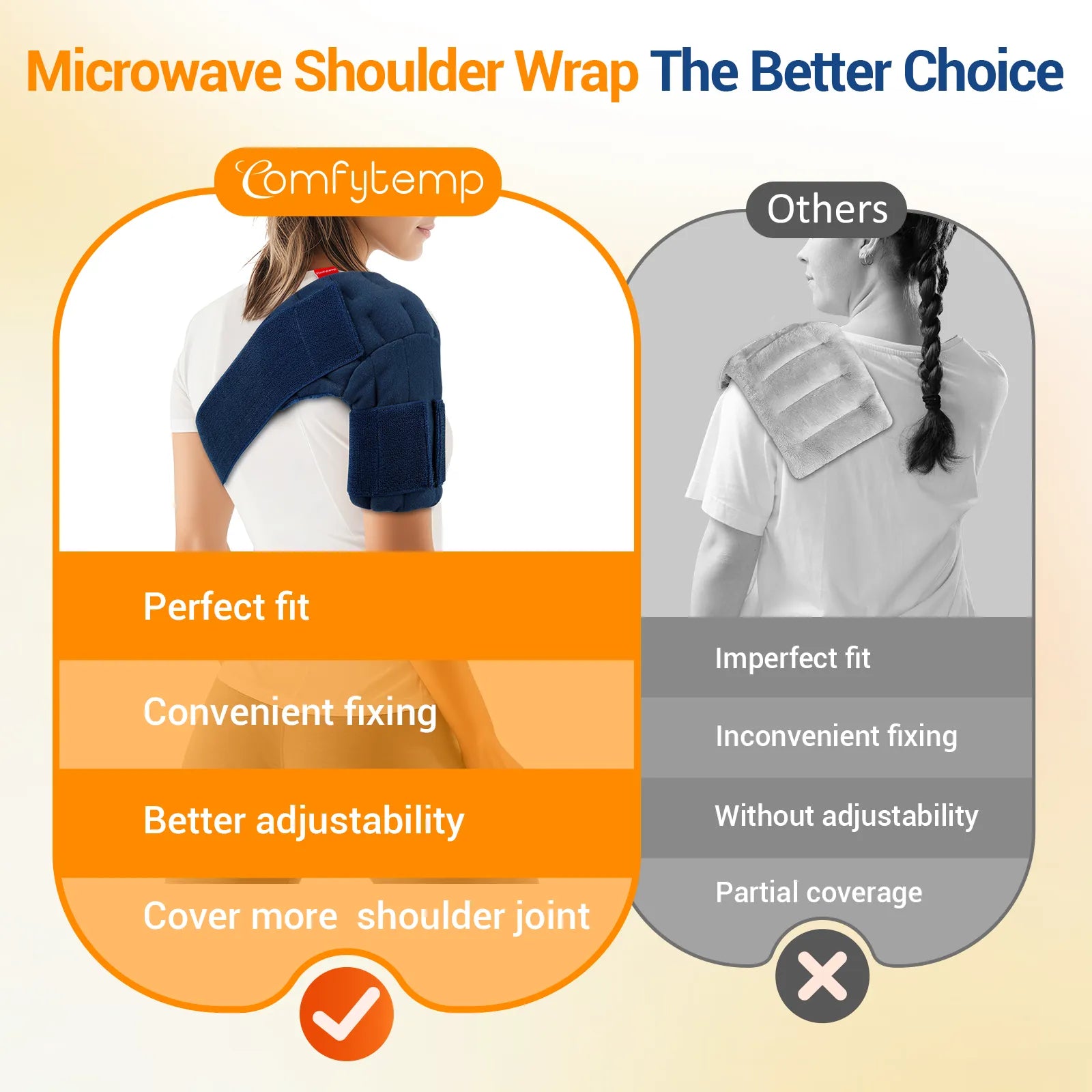 Weighted Shoulder Heating Pad for Targeted Relief: The Comfytemp Single Shoulder Microwave Heating Pad is specially contoured to deliver deep-penetrating moist heat right where it's needed most. Weighing in at 2.3 lbs, its ergonomic shape hugs one shoulder comfortably, providing focused relief from muscle stiffness, tension, and fatigueāideal for anyone with uneven strain or looking to treat one side at a time. Its soothing weighted design offers a calming, hug-like pressure for enhanced relaxation and recovery. (Tips: we recommend new users reference the visual wearing guide in our product images for easy setup. )