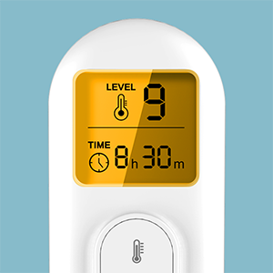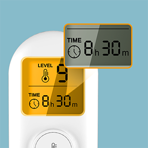 Equipped with 11 timers auto-off range and continuous on heat. Countdown will remind you of the auto-off time. Note: In stay on mode, the auto-off area shows 8h88m