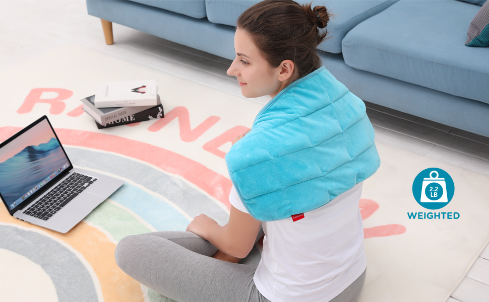 Inner features 2.2lb evenly distributed glass beads, which keep the weighted heating pad in place to your body parts, providing effective soothing to your laps, shoulders, arms, and back pain