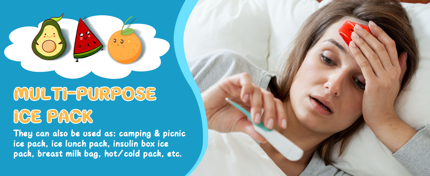 - 🍉【NOT JUST FOR BOO BOOS】Multipurpose Ice Packs: Ideals for kids & adults to relieve the pain of wisdom teeth, headaches, migraine, sinus pressure, breastfeeding, sprains & bruises, swelling & inflammation, muscle aches & stiffness, growing pains, and after sun care. Boo boo ice packs for kids can also be used as: camping & picnic ice pack, lunch box ice pack, breast milk bag, hot/cold pack, etc.