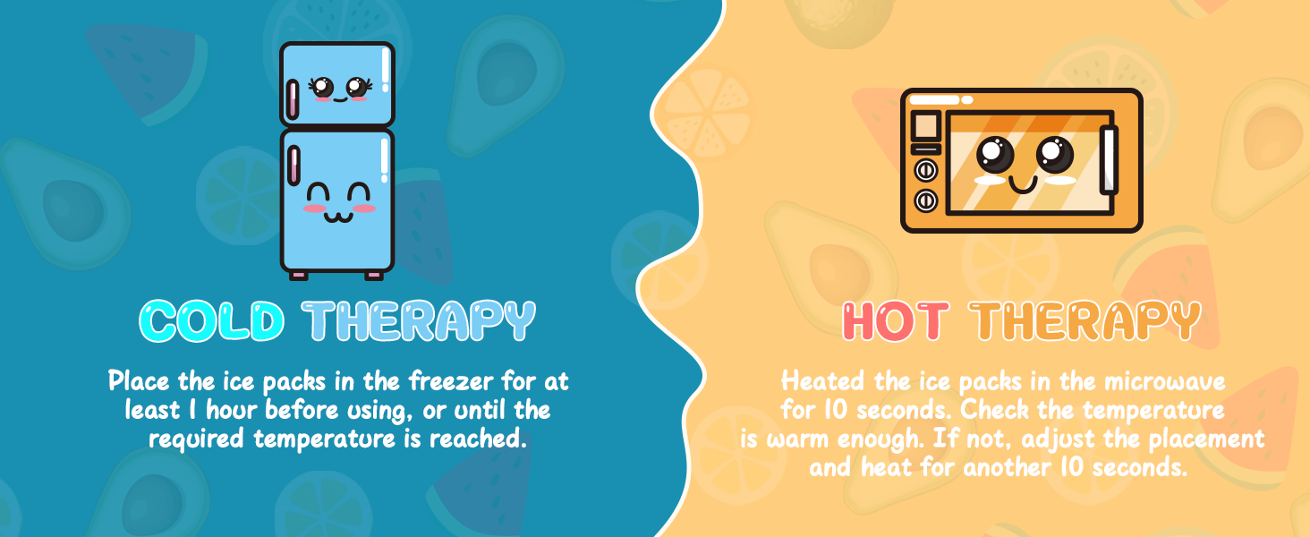 - 🍉【DON'T BE MELONCHOLY】Hot & Cold Compress Pain Relief: Cooling in the freezer for at least 1 hour or until the required temperature is reached. Heated the ice packs in the microwave for 10 seconds. Check the temperature is warm enough. If not, adjust the placement and heat for another 10 seconds. If you have these reusable gel ice packs for injuries, the natural remedy is safe for daily use and can be part of any rehabilitation or recovery program.
