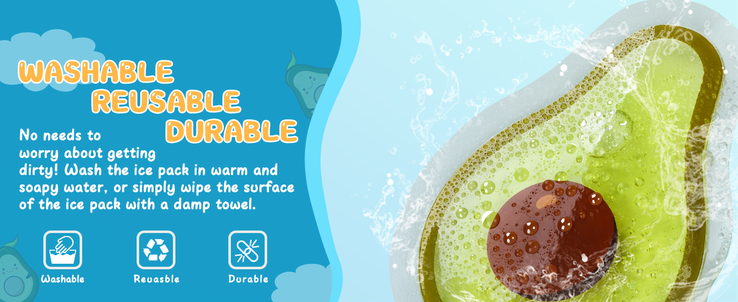 - 🥑【GOOD DAY STARTS WITH AVOCADO】Safe & Trusted Gel: These soft gel ice packs are made of environmentally friendly PVC and filled with non-toxic expert-grade gel, which is completely safe and trusted for kids' sensitive skin. These reusable ice packs for injuries are washable and are flexible and comfortable to place on injury.