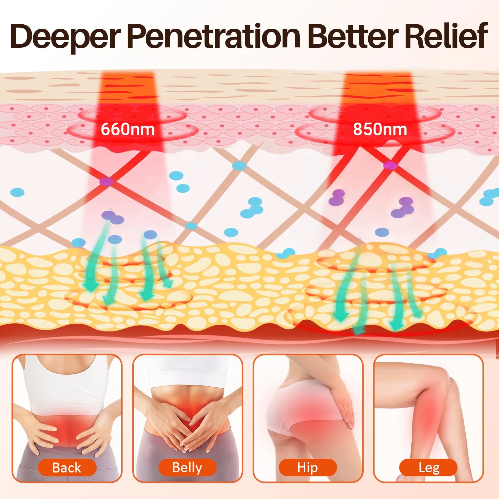 High Power More Powerful: Comfytemp infrared light therapy wrap provide 2 wavelengths each is 660 nm red light and 850 nm infrared light, 660 nm red light act on skin epidermal layer of cells to promote cell metabolism, speed up wound healing and skin repair. 850 nm infrared light to help body joint muscle pain relief, and restore body energy.