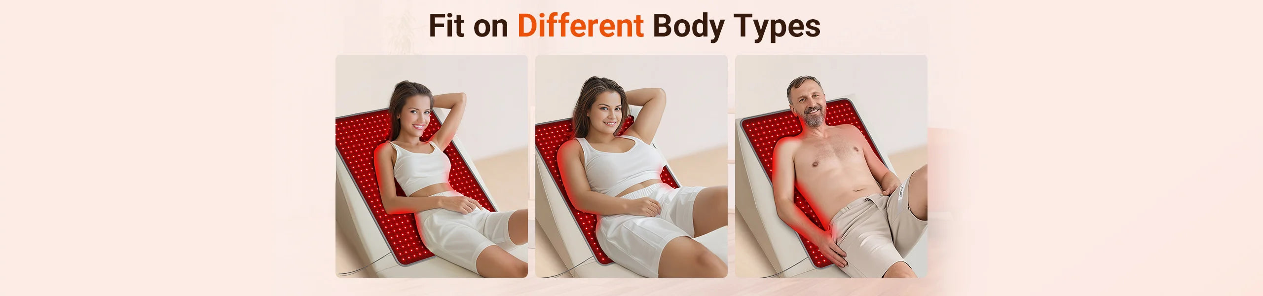 Soft diving composite fabric:Experience cloud-like comfort with our Soft Diving Composite Fabric. Its superior fit enhances infrared penetration for deeper warmth. For best results, we recommend 20-minute daily sessions. (Helpful tip: Wearing lighter clothing can maximize infrared benefits, as thick or dark fabrics may block some light.)