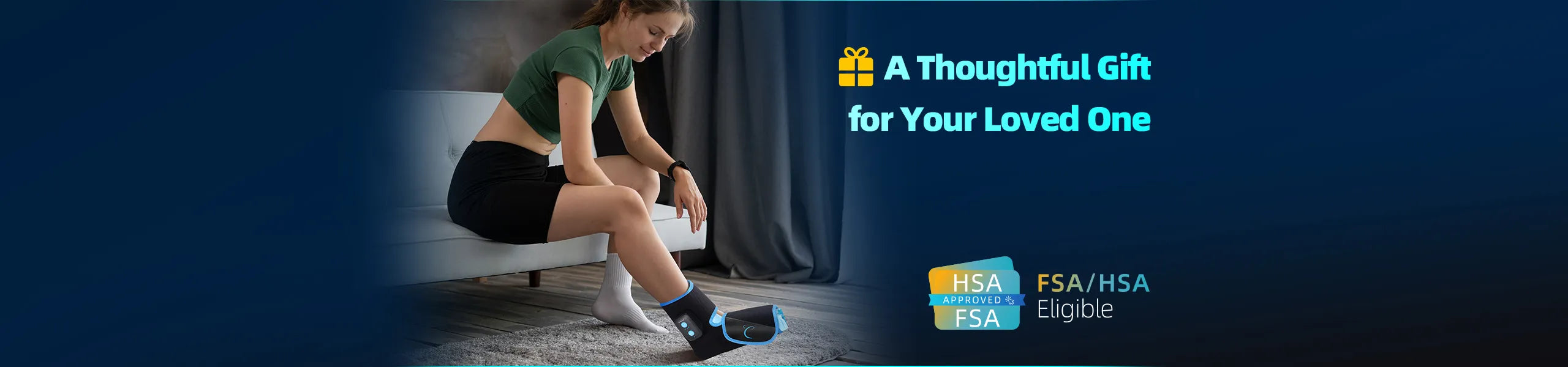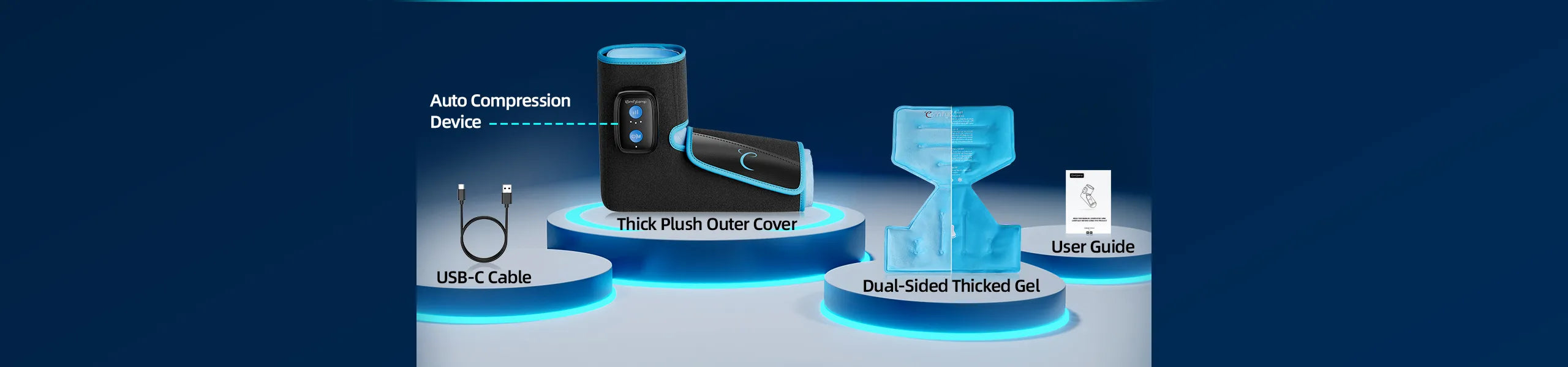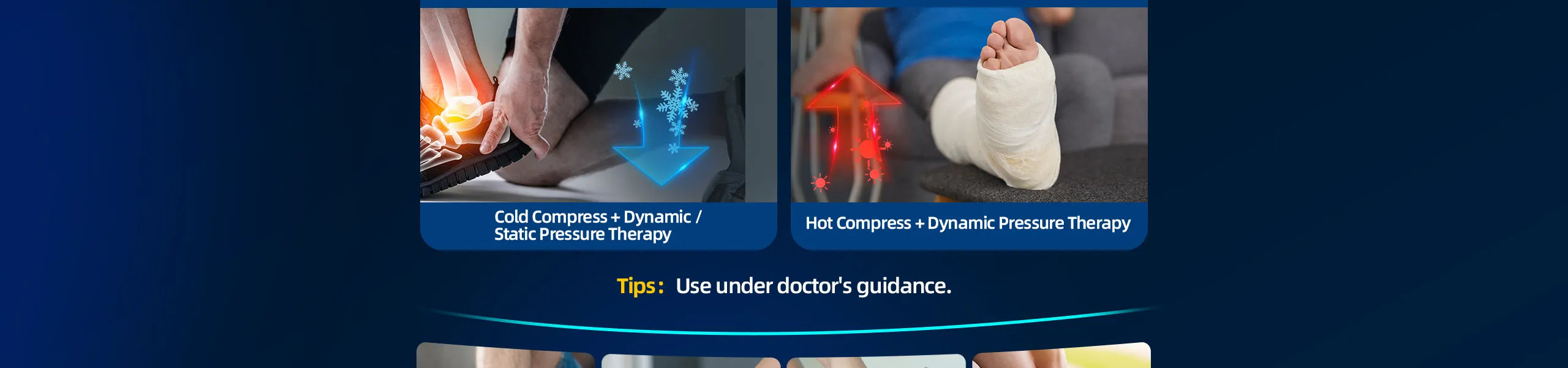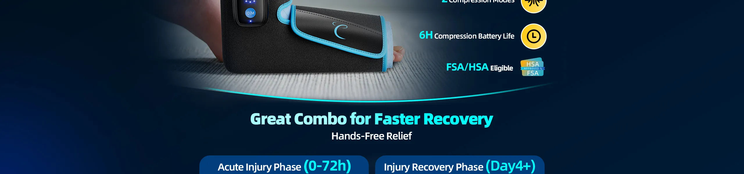 Accelerated Relief:Auto Compression Full Foot Ankle Ice Pack is inspired by the Ice and Compression principles from the R.I.C.E. method—commonly used to support recovery after minor injuries. While R.I.C.E. stands for Rest, Ice, Compression, and Elevation, our design emphasizes combining cold therapy with wearable compression for more effective relief. It offers a practical way to manage discomfort caused by plantar fasciitis, Achilles tendonitis, heel spurs, swelling, sprains, and other common foot or ankle problems—especially helpful in the early hours of discomfort. Deeper Hot & Cold Therapy:This device provides both dynamic and static compression to support recovery. Users can adjust modes as needed, but we recommend cold therapy with dynamic mode during the Acute Injury Phase (0-72 h) to reduce pain and flush out inflammatory substances, or switch to static mode for steady pressure that functions like an ankle support brace. In the Recovery Phase (Day 4+), hot therapy with dynamic compression is recommended to promote tissue repair, reduce stiffness, and speed up healing. Compared to a standard foot ice pack, it delivers deeper, more effective relief. Safe Pressure:According to Therapeutic Modalities in Rehabilitation by William E. Prentice, it is recommended to maintain compression between 20–60 mmHg during the acute phase of injury, as excessive pressure may cause secondary damage. Our device is preset to a safe 30–60 mmHg range—roughly equal to the weight of half to one full soda can—providing effective support while minimizing risk. If the pressure feels too light, you may gradually tighten the straps as your recovery progresses. Remember, more pressure isn’t always better—always follow your doctor’s advice. Supports US size 6-10:To suit more users, we include an adjustable extension strap. The gel cold pack sleeve supports US shoe size 6-10—covering nearly everyone, from athletes to office workers, busy parents, and retirees. Tighten or loosen the strap to find your perfect pressure for ankle pain relief, gout, or post‑surgery swelling, ensuring an ideal relief experience for both men and women. Thoughtful Dual-Side Design:Our ice pack for injuries reusable features two sides: Quick-Cool Nylon for stronger chill and Plush Thermo-Shield for gentler warmth. Choose based on your comfort, or wear socks to reduce the risk of frostbite or burns. The ergonomic sleeve contours to your foot for full-foot relief—whether sitting, lying, or standing. No more awkward handheld packs or staying stuck in bed while missing FIFA Club World Cup, Dipsea Race, NBA, or World Cup moments.