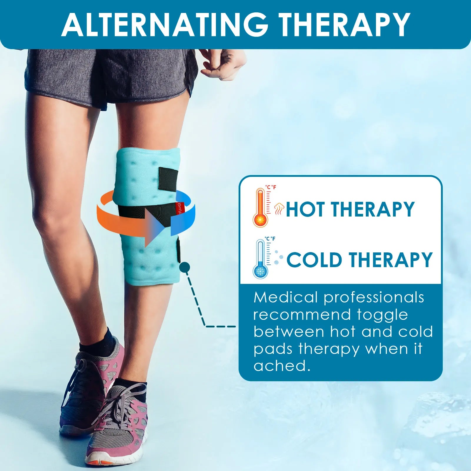Set of 2 ice packs: Meets the alternating use of hot and cold compresses. Medical professionals recommend toggle between hot and cold pads therapy when it ached. After an injury, it's recommended to apply cold compress first, then hot compress for faster healing. You can also enjoy the compression after waking up or training, making dinner, walking the dog, or resting at night. Say goodbye to bothersome shin splint and elbow pain as our ice pack provides effective and enduring soothing relief.