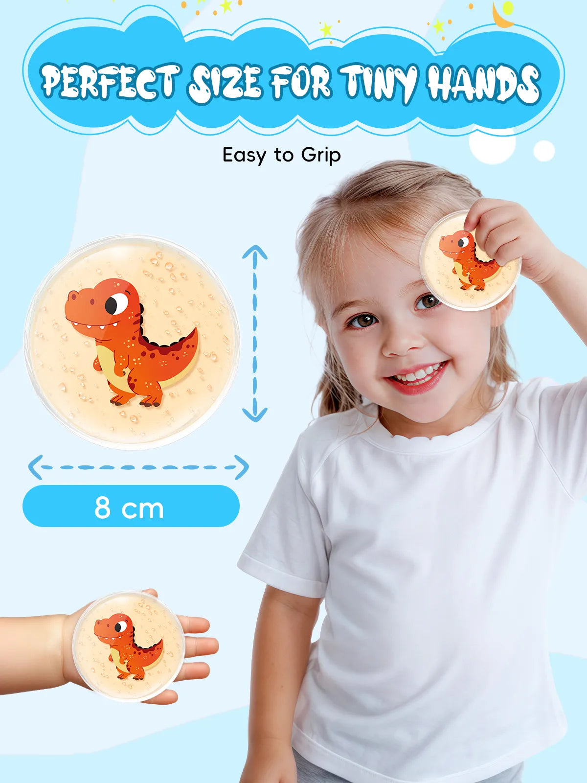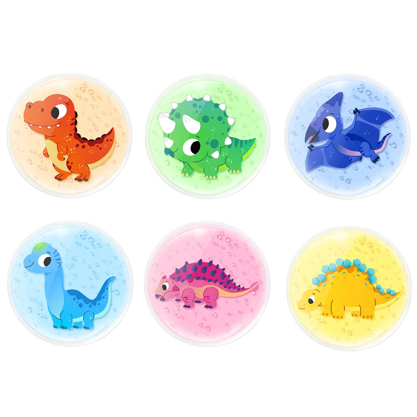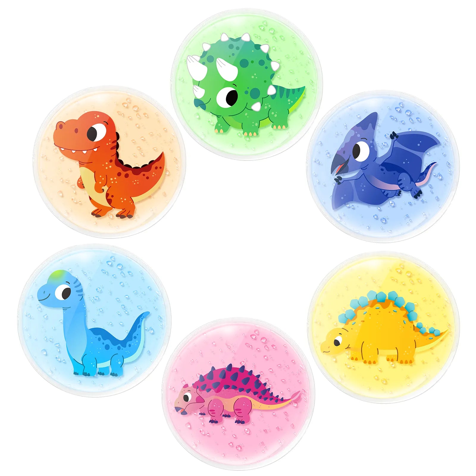 Strong as a Dinosaur: Perfect Size for Kids: Each gel pack is 3.15"In diameter. This compact size is perfect for the palm of kids and toddlers, not too big, and is easily used on any body part, like forehead, arm, knee, neck, shoulder, and even joints and hard-to-reach places. These small gel ice packs can be stored in the refrigerator and used as daily first aid cold packs.