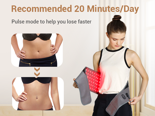 - [Pulse Mode More Effective] Our red light therapy belt provides 4 modes, red light mode, infrared light mode, red + infrared light mode and pulse mode. Pulse mode is our red light therapy belt all lights (630 nm 660 nm red lights and 850 nm infrared lights) at a rate of 600 flicks per minute will generate 10HZ pulse rate energy, pulse energy deeper into the cell tissue, direct hit pain point provide stronger effect on pain relief, better recovery of body energy, more effect on weight lose.