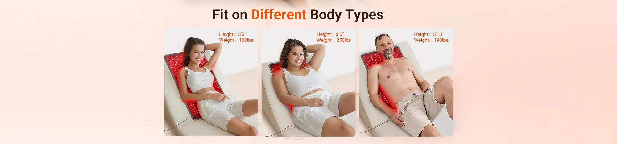 33''x17'' Full Back Coverage: The larger size of this red light therapy pad provides a wider coverage area, like the back, waist, abdomen, shoulders, hips, legs, knees, and feet. Whether you're sitting, lying down, or watching TV, it delivers a comfortable light therapy for your entire body.