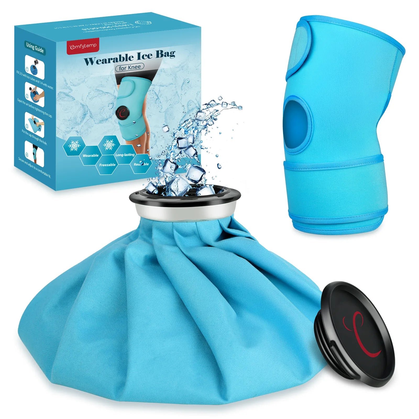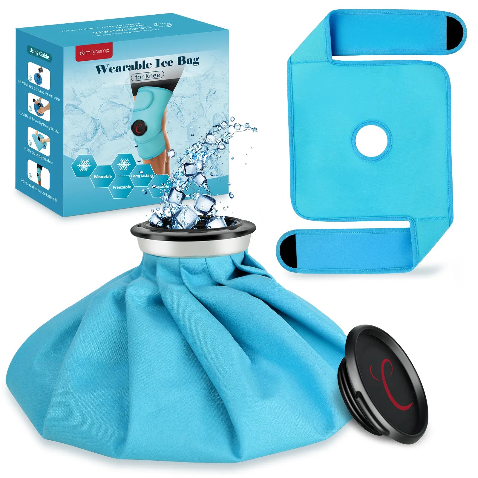 【Detachable Design】Comfytemp Ice Pack features a unique detachable design that lets you use the pack independently. Add hot water to alleviate joint injuries, menstrual cramps, muscle stiffness, and migraines—or use cold therapy. It can also be secured with a strap on areas like your calves or forearms for targeted pain relief. Note: For hot pack use, maintain the water temperature between 50–60°C (122–140°F).