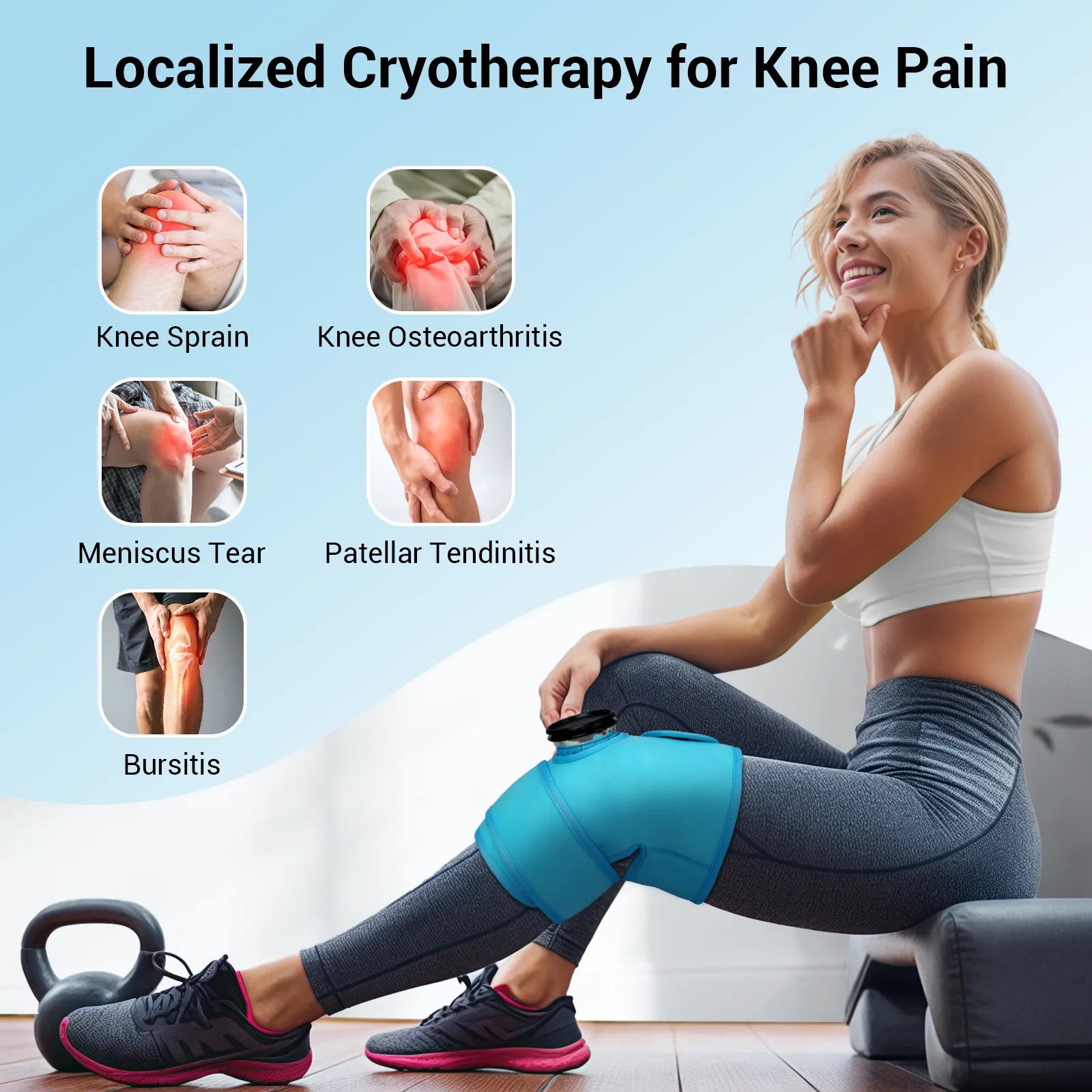 【Adjustable Fit】The adjustable, user-friendly design fits knee circumferences up to 38 inches (measured around the kneecap), making it suitable for fitness enthusiasts, office workers, seniors, and more. The skin-friendly, temperature-regulating fabric strap provides targeted knee pain relief while offering comfortable knee support during cold compression therapy.