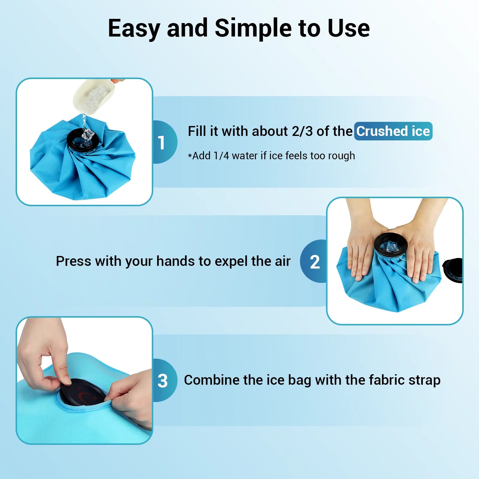 【Hands-Free Use】When you hold an ice pack for too long, your hand grows stiff, your fingers ache from the cold, and the constant need to readjust distracts you from everything else. But with our refillable ice bag, the chill stays where it should—effortlessly. No numb hands, no slipping, just pure, hands-free pain relief that lets you focus on what truly matters. Feel the difference, and reclaim your freedom.