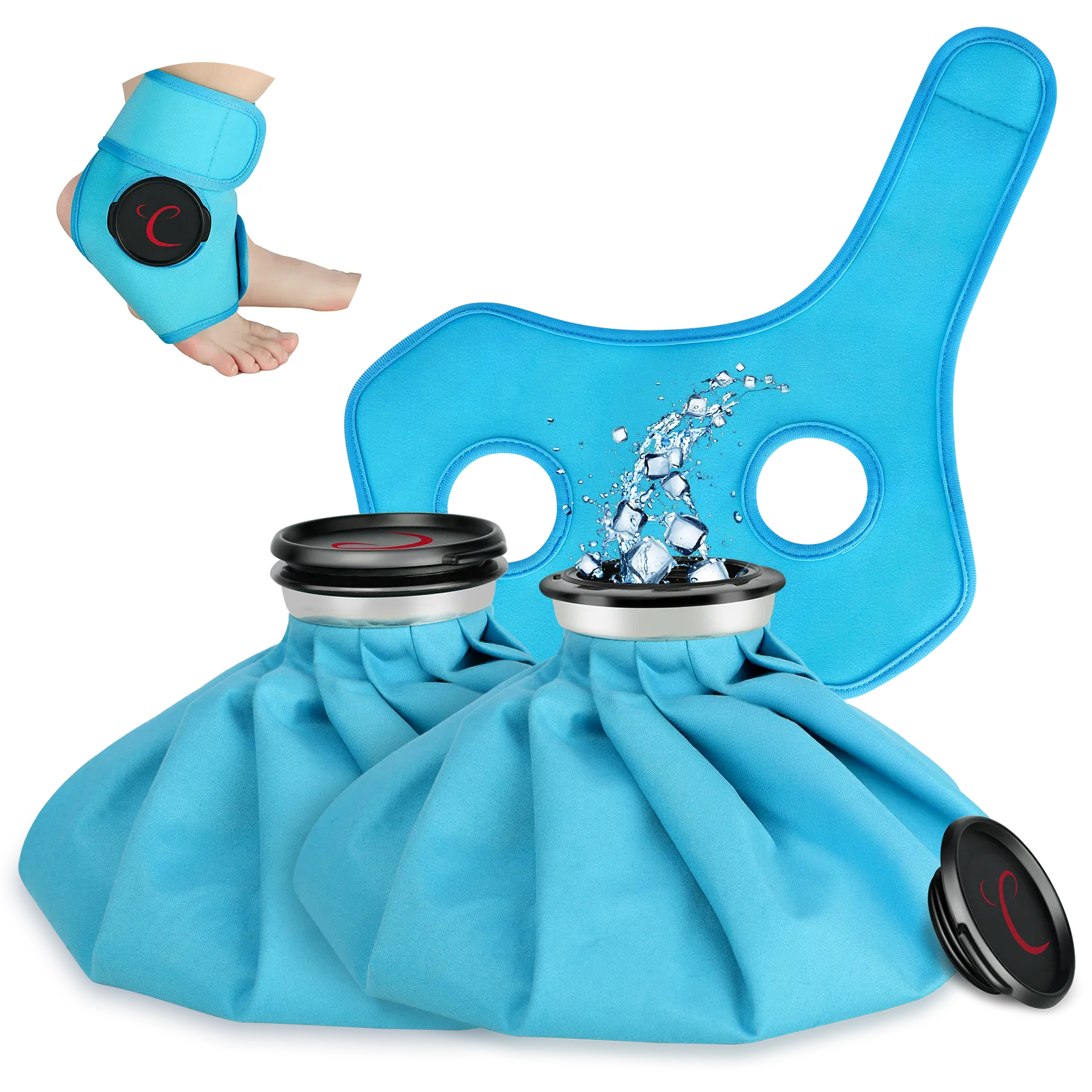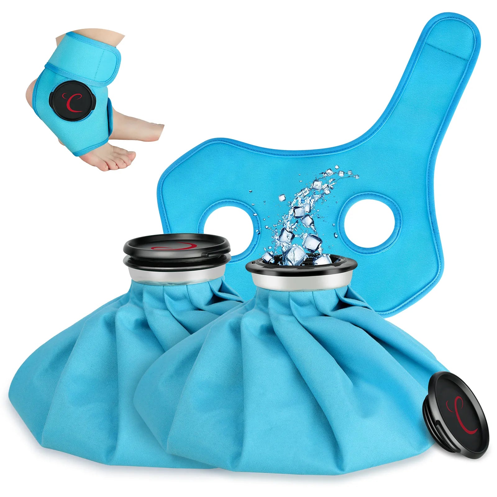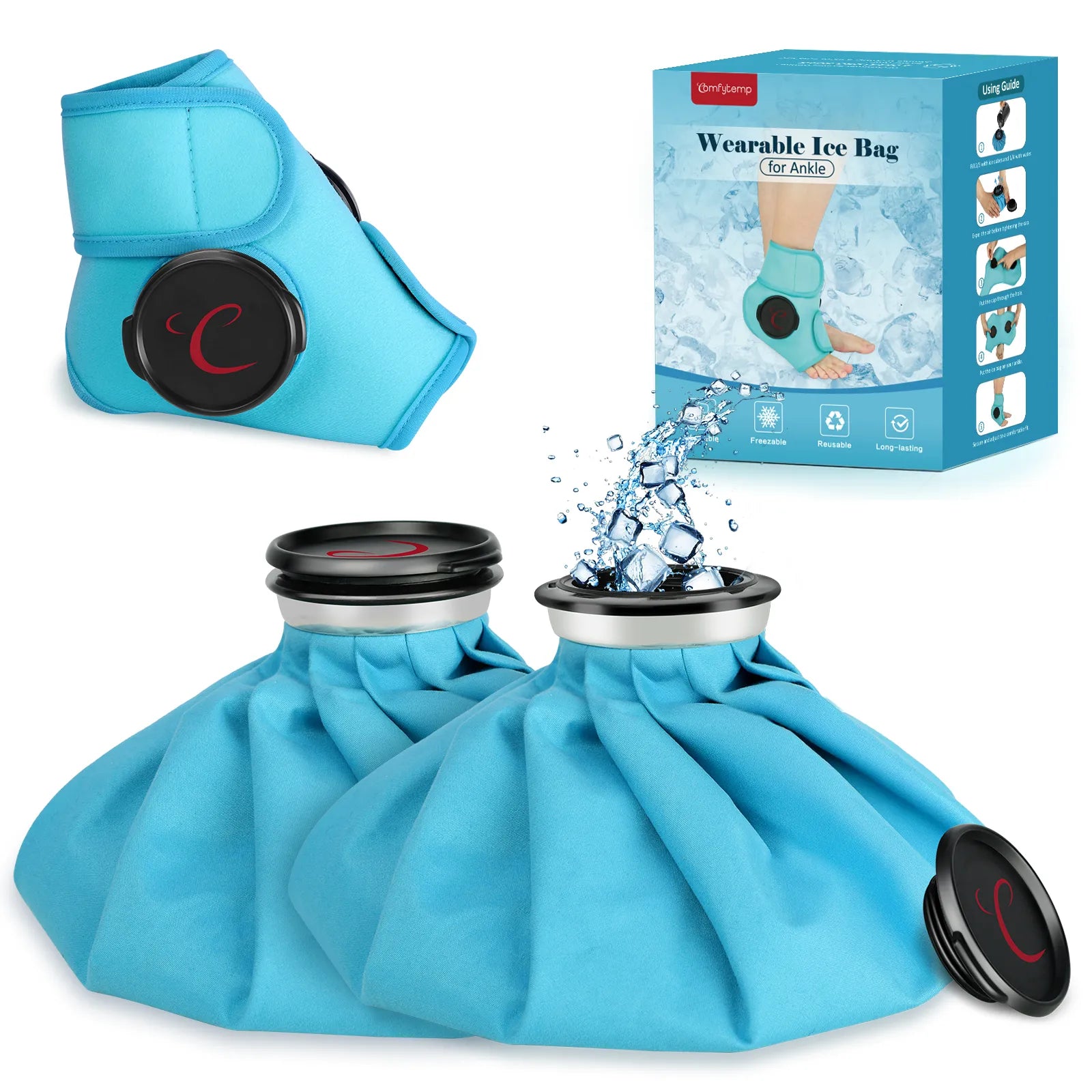 Flexible and Customizable Cold Therapy for Your Needs. The Comfytemp Ankle Ice Pack Wrap includes 1 adjustable wrap and 2 refillable ice bags. Add 2/3 crushed ice and optionally 1/4 water to achieve a depper, colder therapy. By adjusting the ice-to-water ratio, you can adjust the intensity and duration of your treatment. This customizable cold therapy ensures the perfect level of relief based on your needs. When you're done, just empty out the water/ice and set it upside down on a towel to dry.