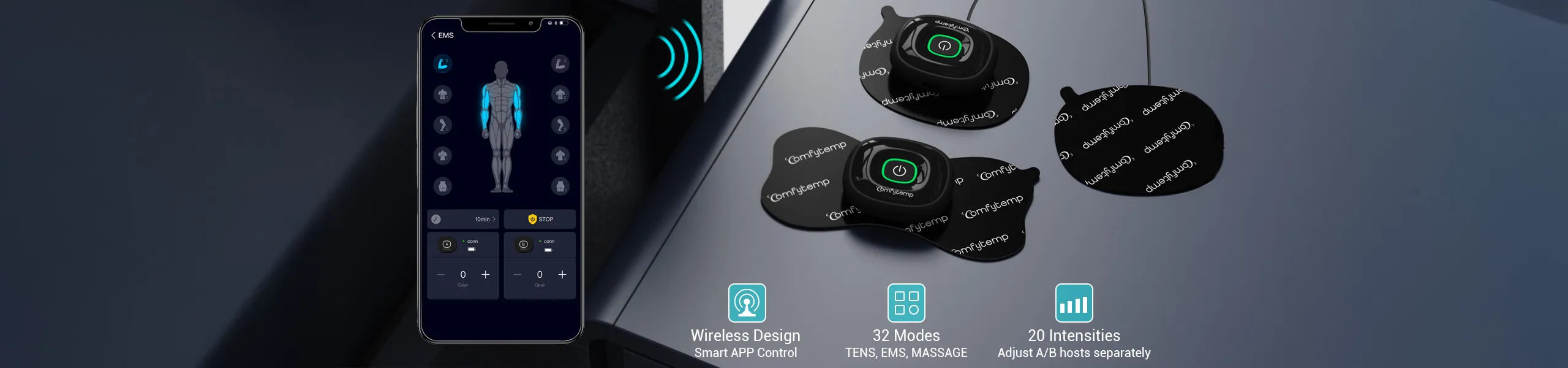 Wireless Connectivity & Smart Control: The Wireless TENS Unit Muscle Stimulator can be easily paired and controlled with a mobile APP, getting rid of troublesome wires and easily lost remotes. The APP interface is concise and clear, and the operation is simple.Scan the QR code in the manual to download the App or APK file.Or, search for "Comfytemp" in the app store to download it.