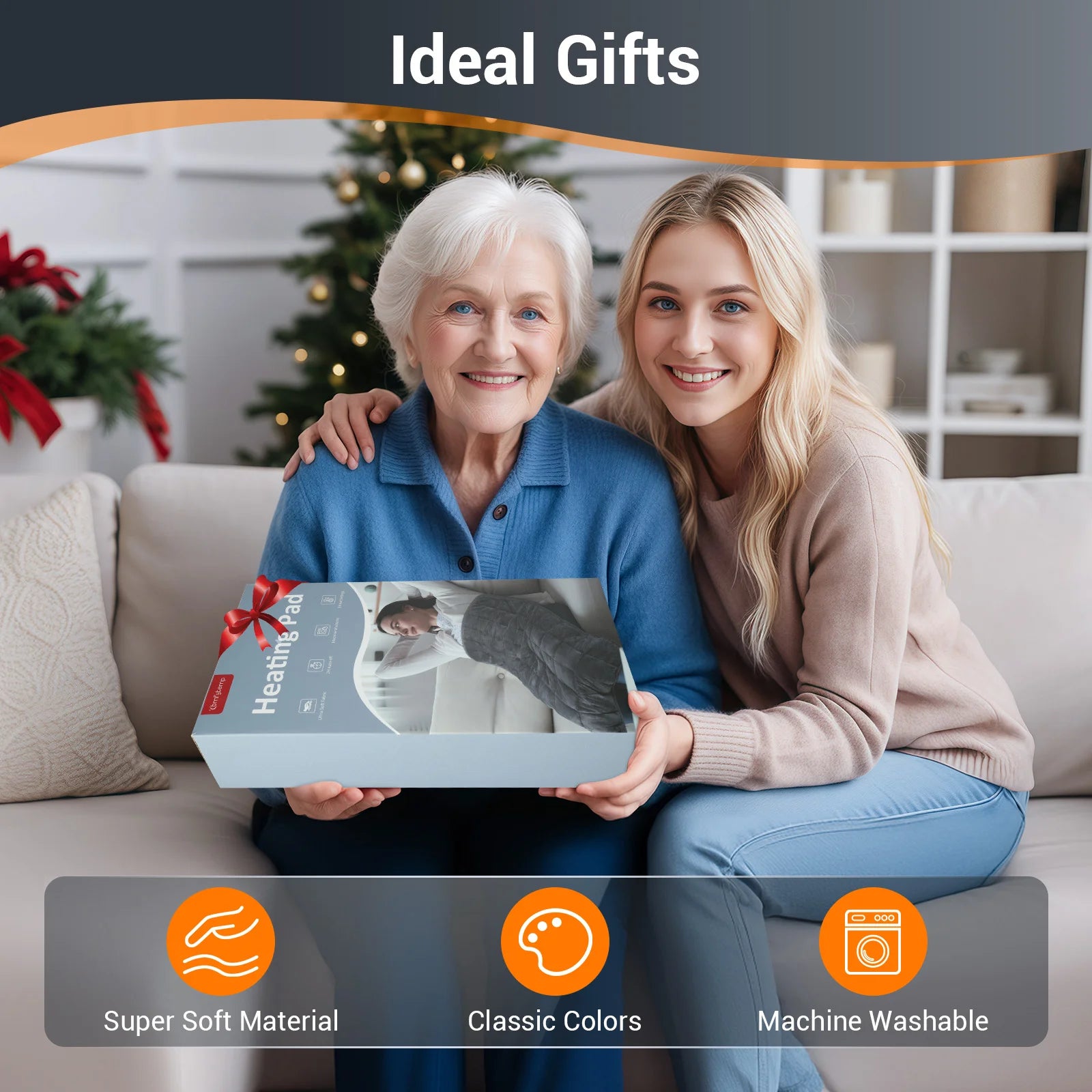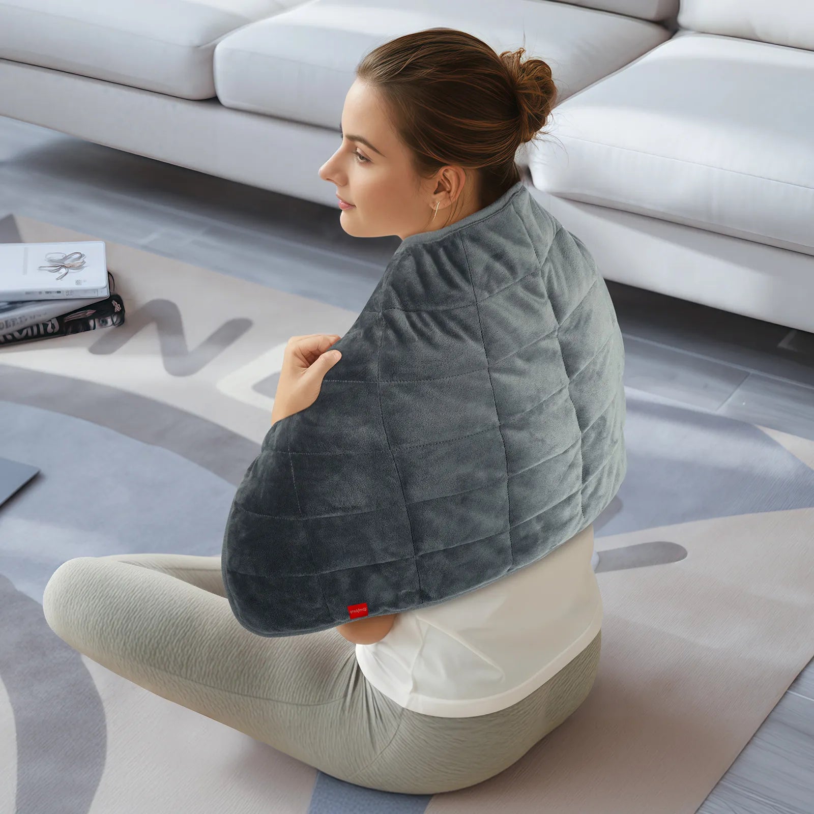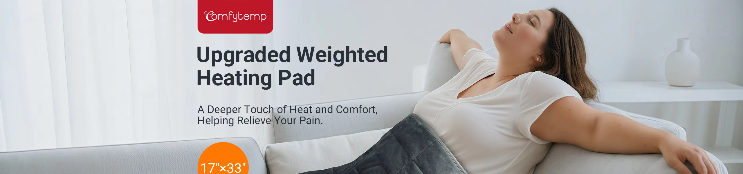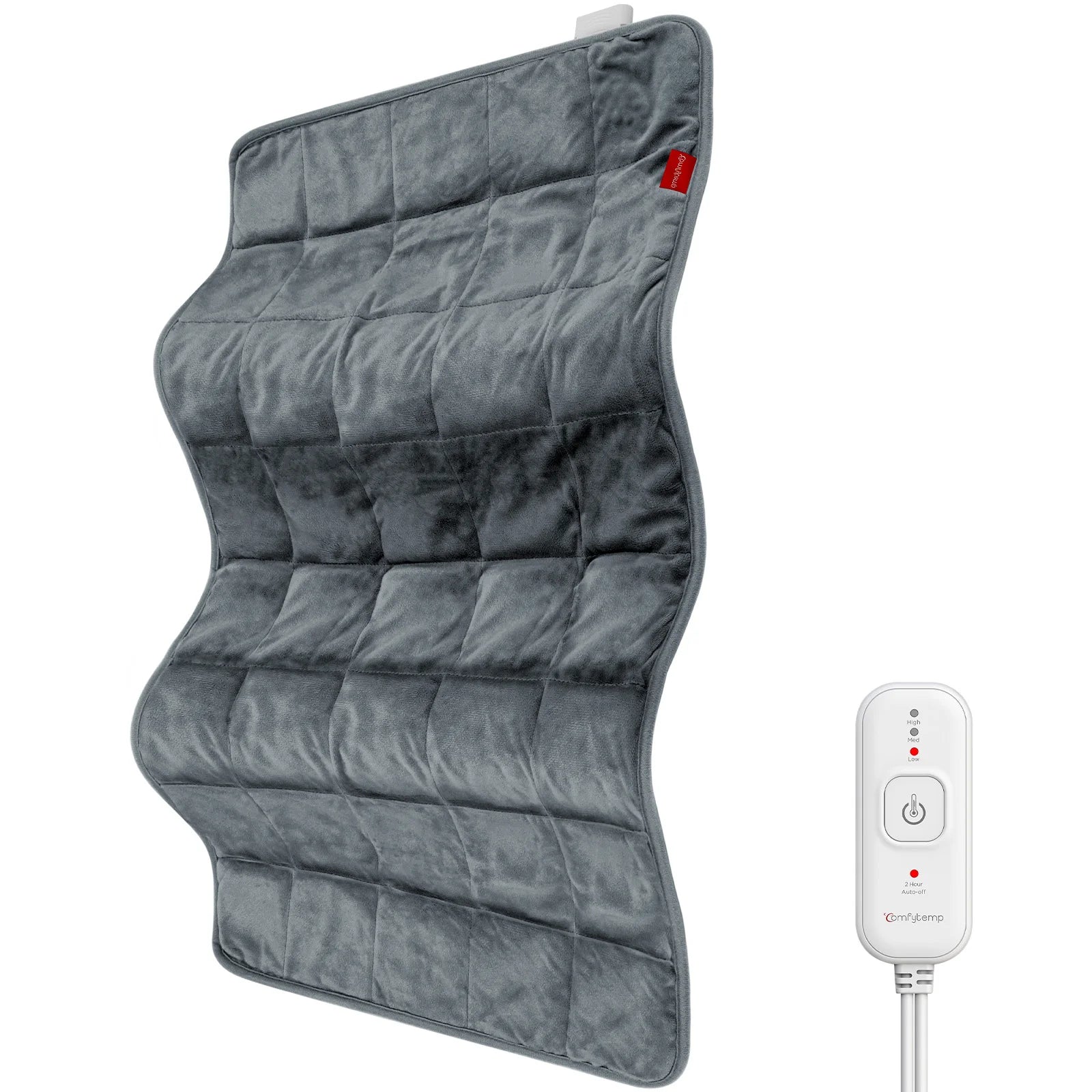 Unique Weighted Design: Comfytemp's 17"x33" weighted heating pad uses evenly distributed ceramic beads for exceptional heat retention. Their high thermal capacity absorbs and slowly releases warmth, delivering gentle, long-lasting comfort. Electrically insulated and heat-resistant, they prevent overheating risks and ensure safety. Made with 100% inorganic ceramic beads—more natural. The 3.8lb weighted design creates a "hugging" sensation, offering professional-grade heat therapy. Effective Relief: Our heated pad delivers gentle only 3.8lb pressure for optimal body contouring — substantial enough to enhance heat transfer yet never overwhelming. The warmth molds closely to the body that temporarily relieves back pain, stiff muscles/joints, arthritis discomfort and spasms. By combining heat with ergonomic weight distribution, it provides therapeutic compression while creating a warm embrace feeling, especially good for relaxing women menstrual cramps. Extra-Large Size Design: With its 17"x33" design, this large heating pad delivers most body part warmth in one session – comfortably enveloping your full back, neck/shoulders, thighs/knees/calves, or abdominal area. Compared to standard 12"x24" pads, its 40% larger surface accommodates broader body frames while ensuring even heat distribution. Ideal for users seeking comprehensive heat therapy across multiple zones. Easy & Safe to Use: The heating pad for neck and shoulders and back features 3 adjustable heat levels-- low, mid, and high, which are enough to meet your heat needs. This period cramps heating pad features a 2-hour auto-off function for optimal heat therapy sessions, balancing effectiveness and energy efficiency while safeguarding against overheating. Studies show ceramic beads absorb heat before releasing it. If it feels not hot enough, please use it for a bit longer. Soft Flannel & Machine Washable: The washable king-size full body electric heating pad is made with a premium quality flannel which is super soft to touch your skin and provides maximum comfort for your full body. In addition, it's easy to clean, just detach the controller and then wash it by hand or machine (Note: Do not tumble dry). Just spray a little water on the surface of it, then can enjoy a more penetrating heat therapy with our moist heated pad.