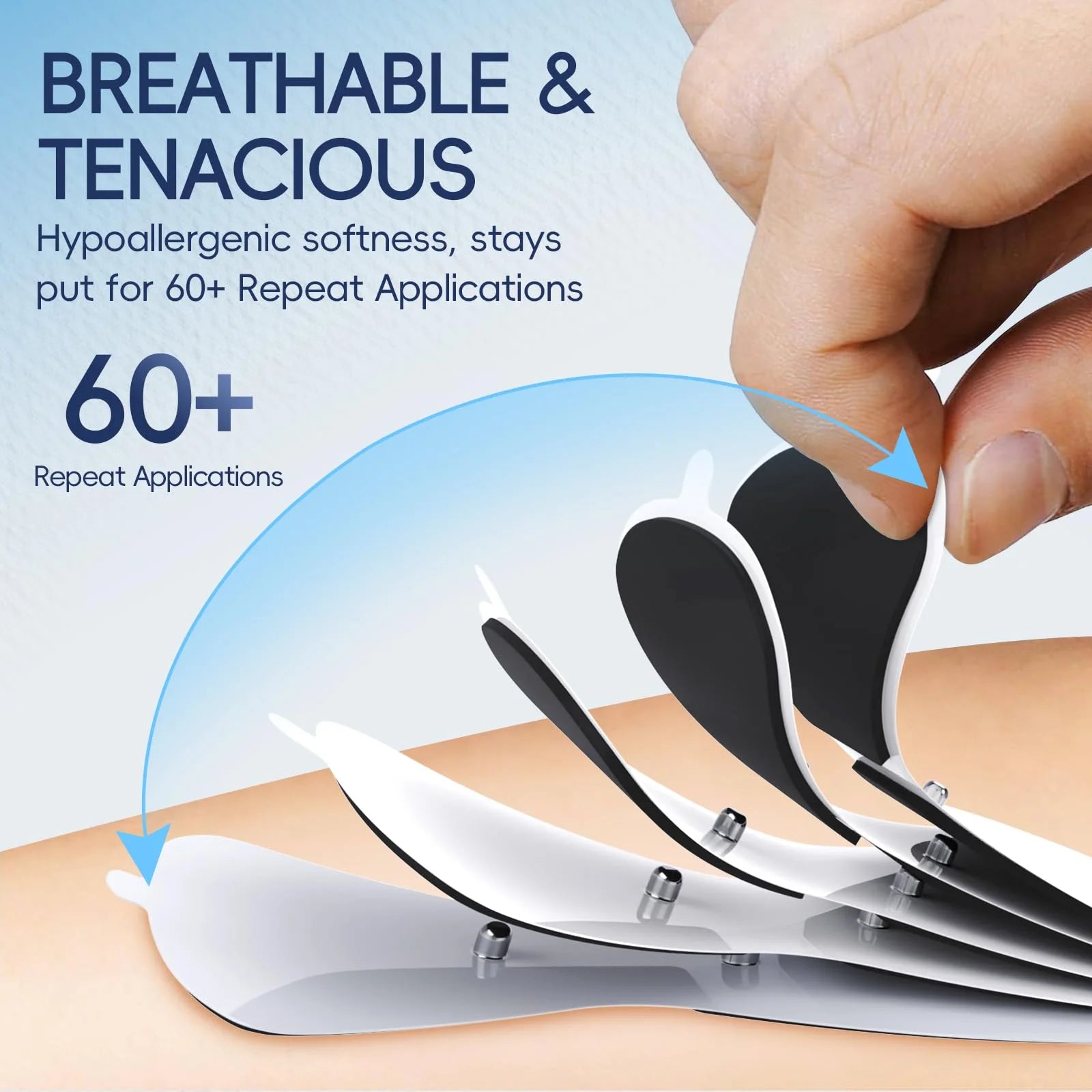 Premium Electrode Pads:Experience all-day adhesion with 2 medical PET TENS pads ( 5.1" x 2.4"). Premium gel stays secure through intense workouts, yet allows painless removal from skin. Relieves muscle aches and pains in the shoulders, lower back, arms and legs. When the electrode pads lose adhesion, rinse it with water, scrape off surface residue, then air-drying, adhesion will renew, enabling reuse for 100+ cycles.