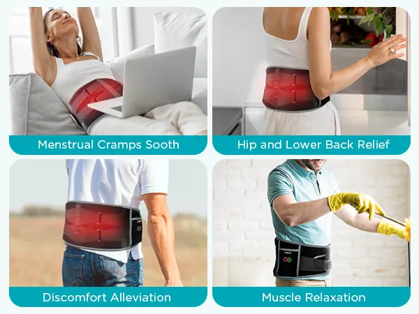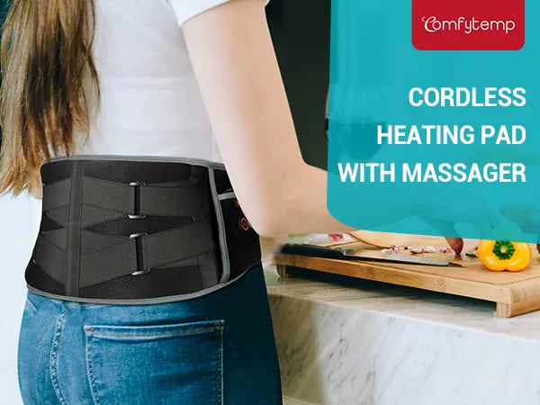 Almohadilla térmica inalámbrica para aliviar el dolor de espalda, cinturón lumbar Comfytemp con función de masaje y alimentación a batería, gris