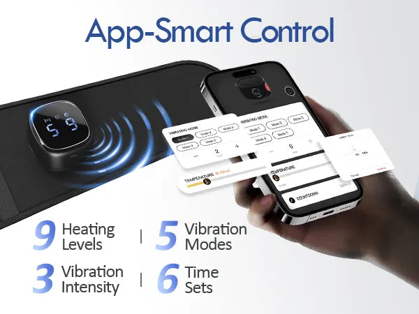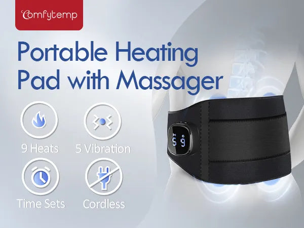 Almohadilla térmica portátil inalámbrica Comfytemp para aliviar el dolor de espalda, masajeador lumbar con calor inalámbrico, compatible con FSA y HSA, control por aplicación, 9 niveles de calor y 5 de vibración, regalo de cumpleaños para mamá