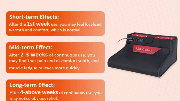●Thermal Effects: The warmth generated by red light therapy is felt immediately. Unlike heating pads, which primarily heat the skin's surface, the heat from red light penetrates deeper into the body.
