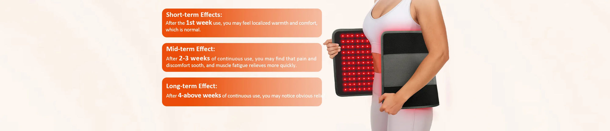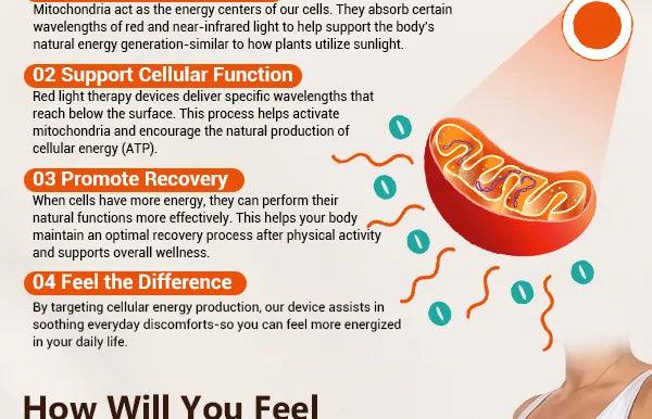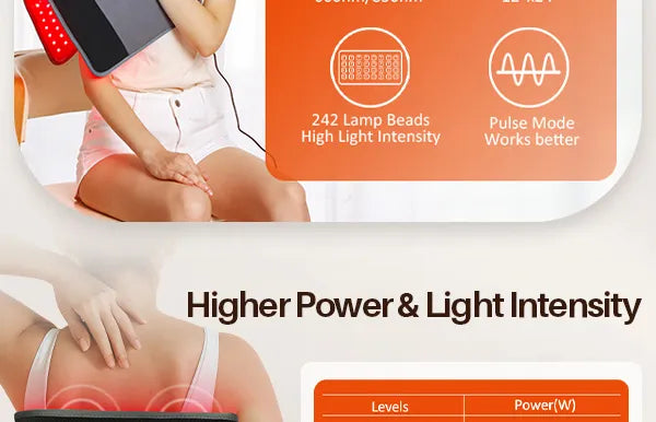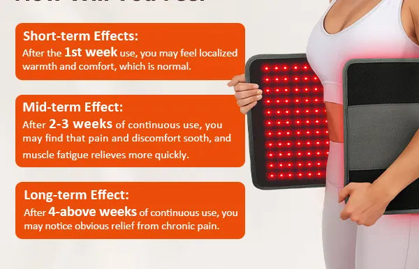 ●Thermal Effects: The warmth generated by red light therapy is felt immediately. Unlike heating pads, which primarily heat the skin's surface, the heat from red light penetrates deeper into the body.
