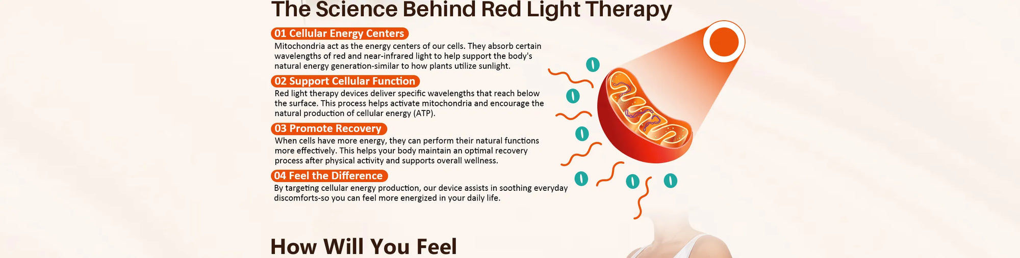 Red light therapy works through two mechanisms: photobiomodulation and thermal effects.
