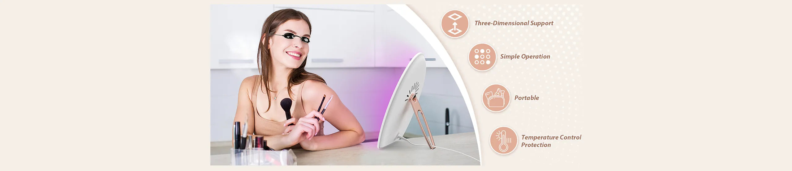 More Ways to Use: Our beauty light panel is designed with back support, you can easily place it on the sink, dresser and use it. The size of our beauty lamp is 7.44" x 9.45" and the weight is 1.5 lists, you can hold it to shine on your face. The back support supports 180° adjustment, if you have hooks you can hang the beauty panel for use. More ways to use it are waiting for you to unlock.