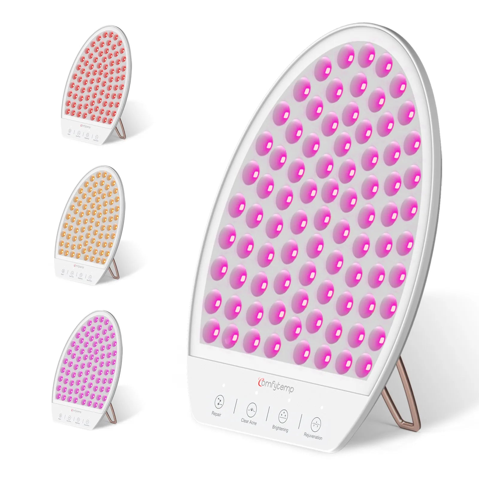 Not Just Red Light: Comfytemp tri-color beauty lamp panel featuring 84 lamp beads, 4 led in one lamp beads, which is 630nm red light, 850nm infrared light, 460nm blue light, 590nm yellow light, 4-chips for better skincare results. Not just red light, 4-light solutions for more skin problems, repiar damaged skin, remove oil, brighten spots and rejuvenate skin. (Note:850nm infrared light is invisible to our eyes)