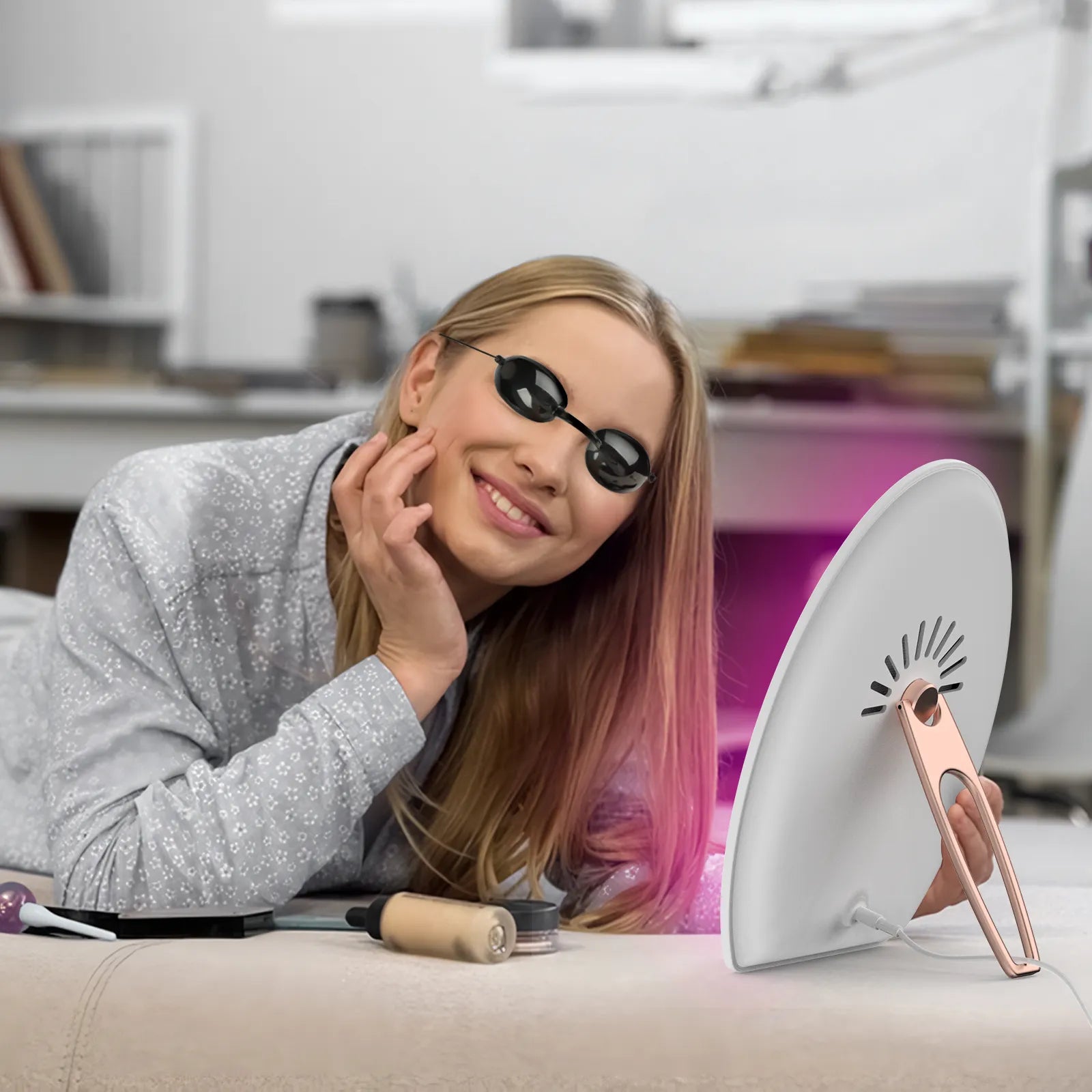 Easy to Use: After cleansing and moisturising your face, adjust the distance of the panel between 6-12 inches, put on your glasses and choose the desired mode to switch on the machine, our 3-colour beauty light therapy panel comes with a 10-minute timer so you don't have to worry about not having enough or too much time for your physiotherapy treatment, and you'll see a change in your skin after 28 days if you stick to the ten-minute daily use.