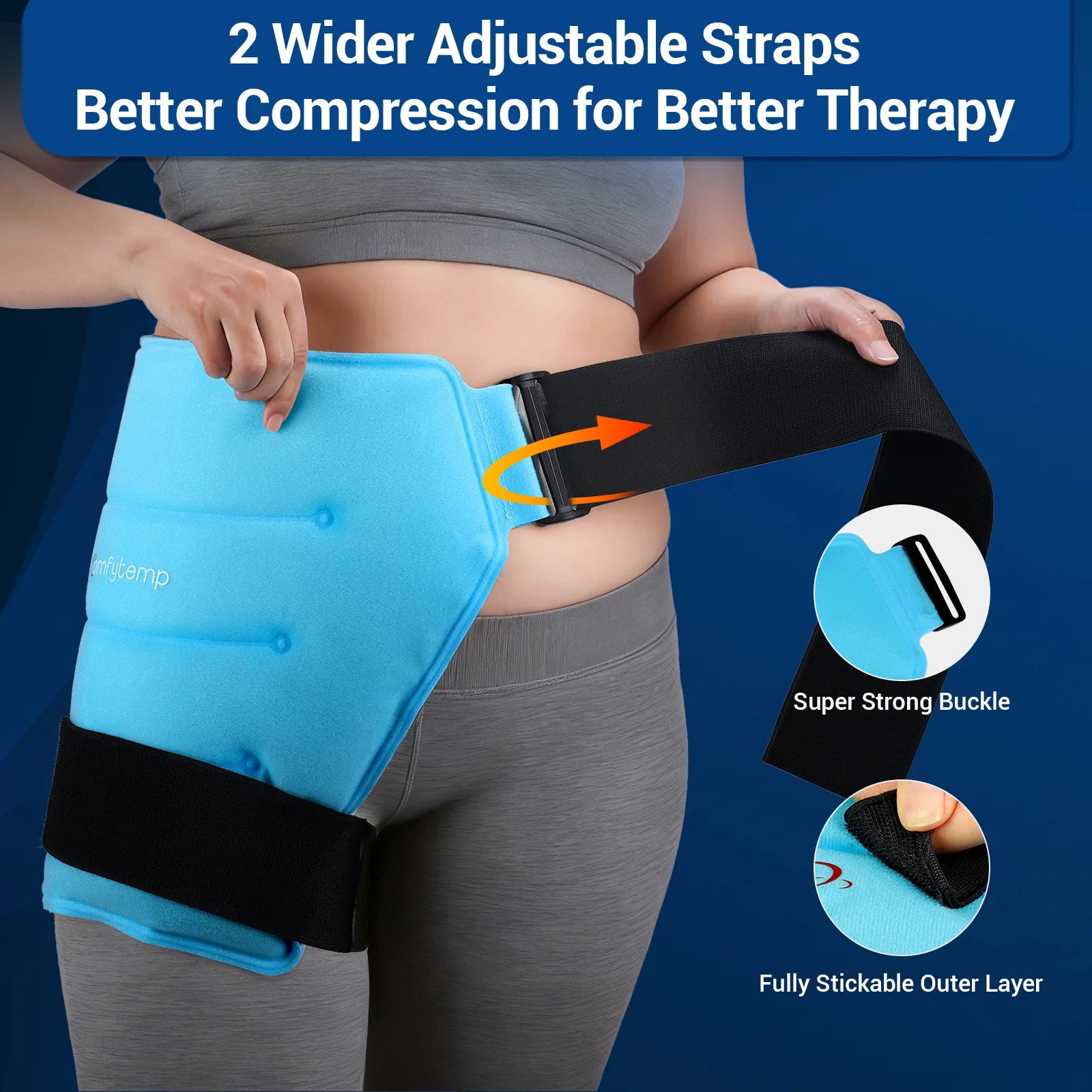 • 3 Correas de Compresión Ajustables: Esta faja de cadera extragrande con hielo se sujeta con 3 correas ajustables para mayor compresión, ofreciendo un ajuste seguro y manos libres que se mantiene en su lugar al caminar. Su diseño integrado permite que las correas se ajusten fácilmente al neopreno transpirable exterior para una comodidad personalizada. La faja de cadera Comfytemp ofrece opciones de terapia de frío y calor para aliviar la fatiga y el dolor, ideal después de un entrenamiento intenso o una larga jornada laboral.