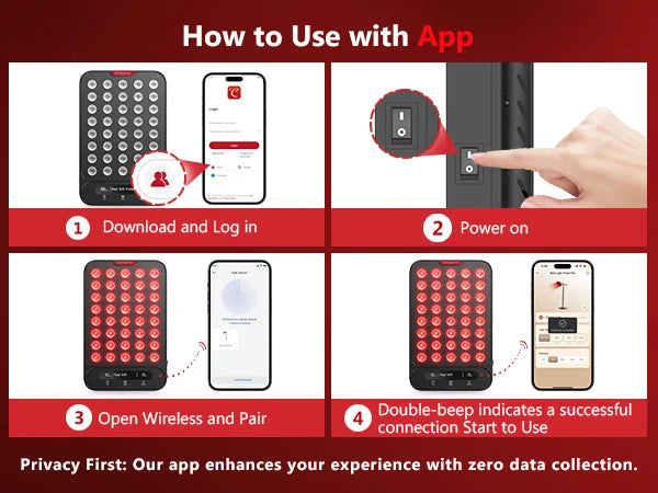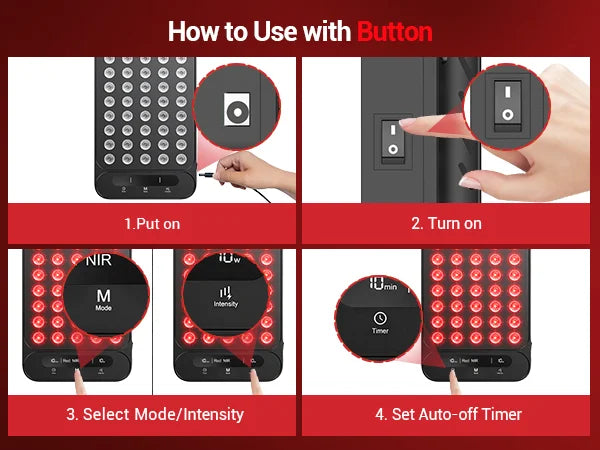 A: We recommend 10–20 minutes per session, 1–2 times daily. If you're new to red light therapy, start with 5–10 minutes and gradually increase as your body adjusts.