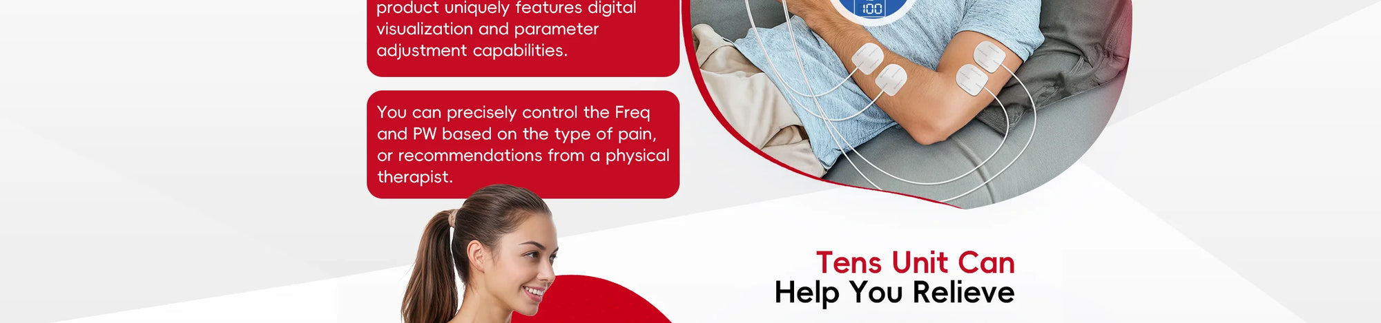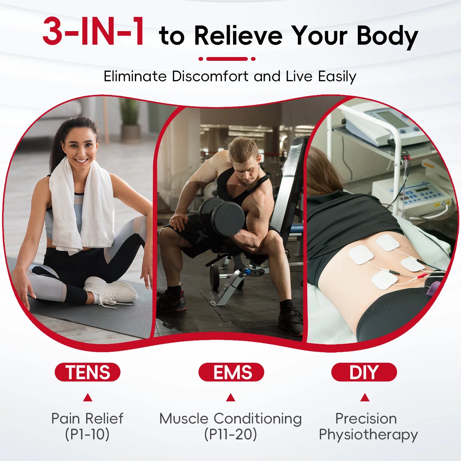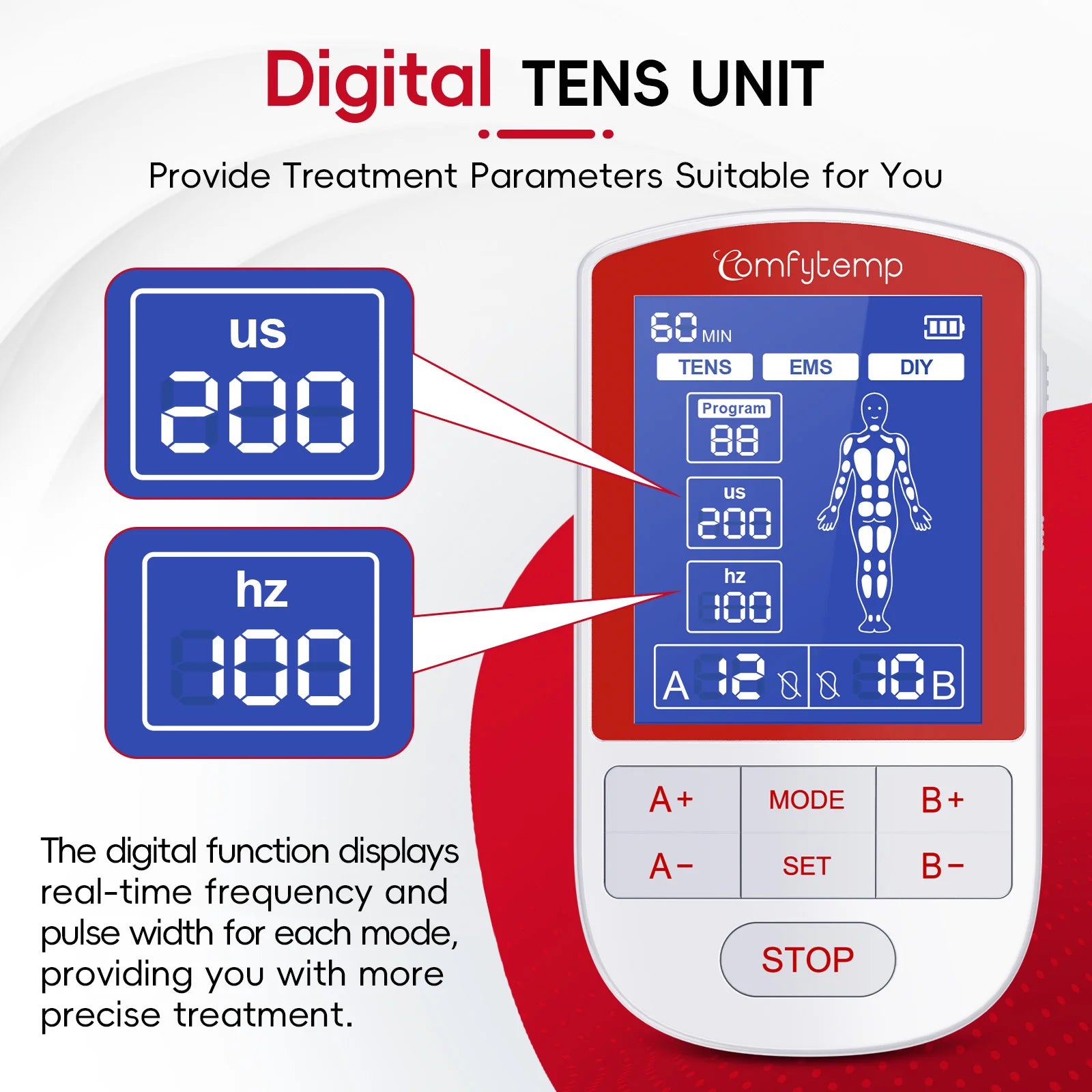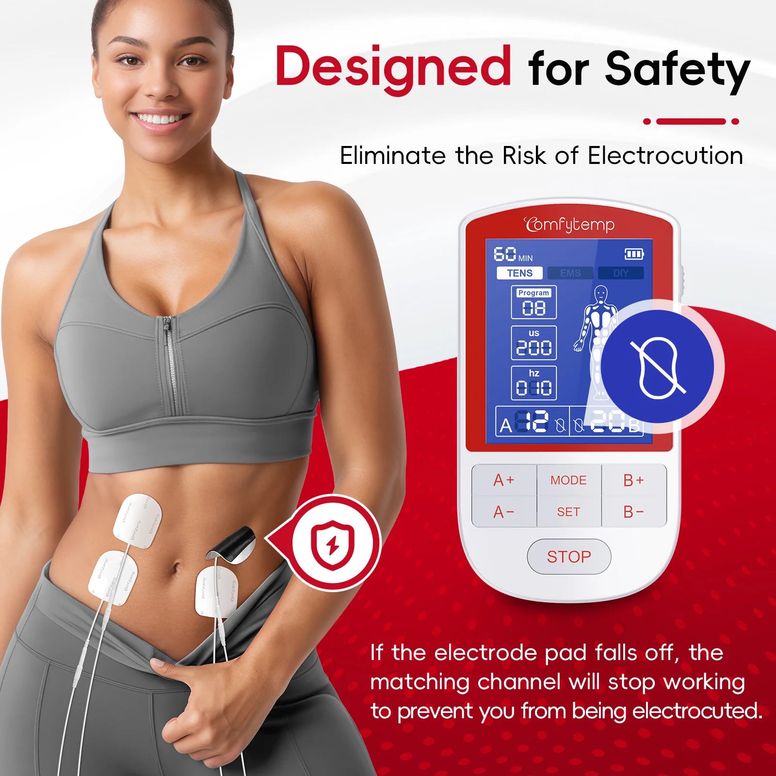 Drug-Free Solution:The Comfytemp TENS unit combines TENS and EMS therapies for versatile, at-home pain management. Designed to deliver targeted, long-lasting relief without medication, This TENS machine addresses back pain, period cramps, arthritis, carpal tunnel, tennis elbow, and discomfort in shoulders, knees, legs, or feet. The muscle stimulator' TENS mode manage back/neck pain during office work, EMS ease acute knee stiffness after hiking, or reduce gym soreness at weekend.