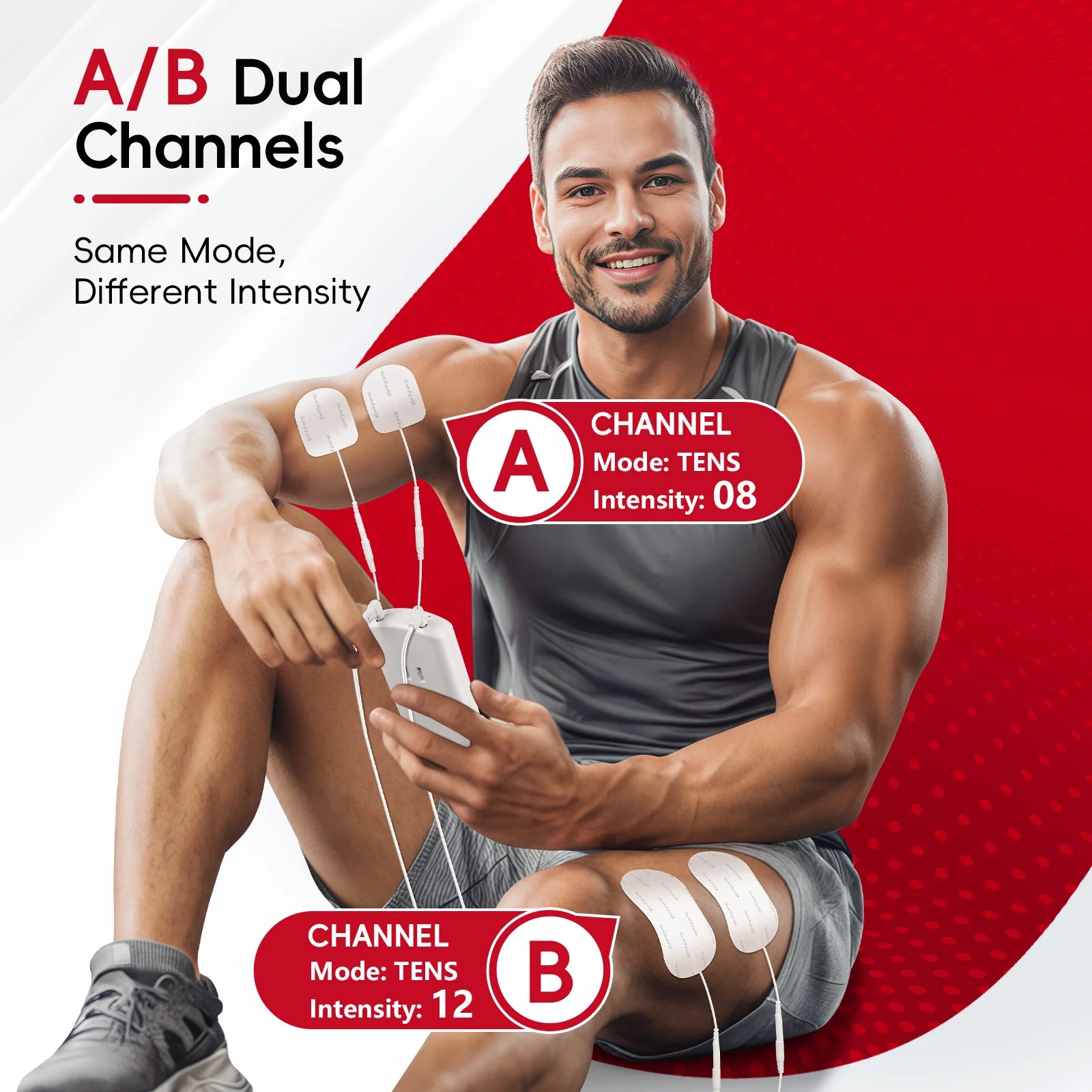 Premium Electrode Pads:Experience all-day adhesion with 10 medical PET TENS pads (2x large 2.4 x 4 for back/legs; 8x small 1.8 x 1.8 for joints). Premium gel stays secure through intense workouts, yet allows painless removal from skin. When the electrode pads lose adhesion, rinse it with water, scrape off surface residue, then air-drying, adhesion will renew, enabling reuse for 100+ cycles. Attach the device to your belt/pocket via clip, and enjoy mess-free relief anywhere.