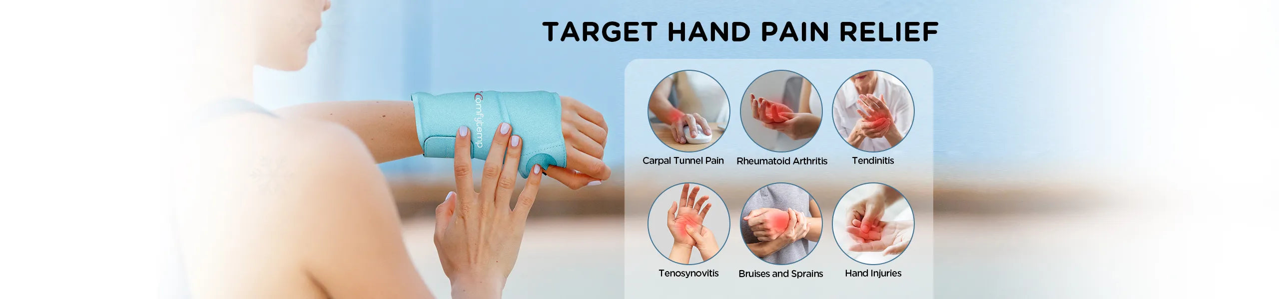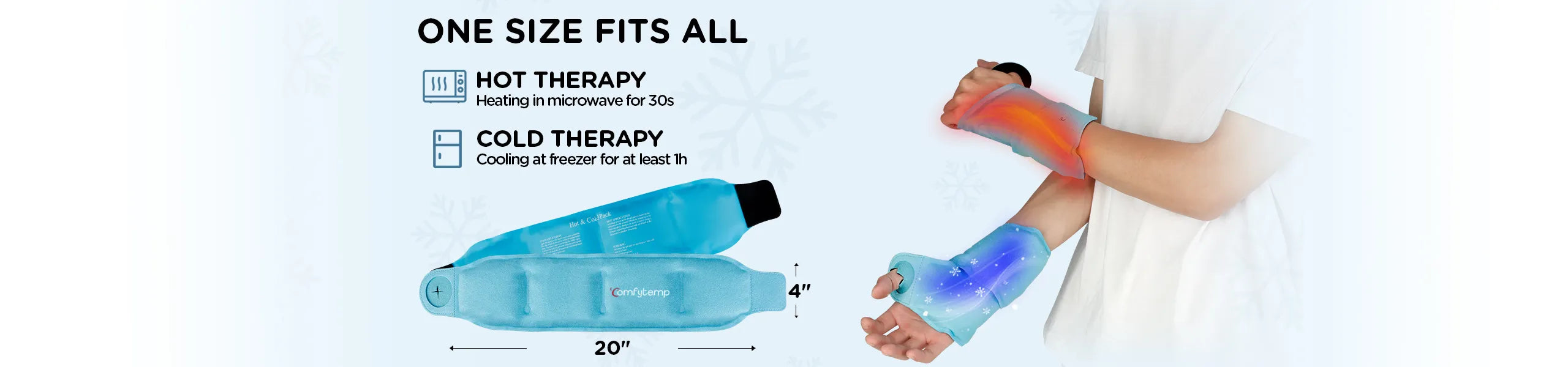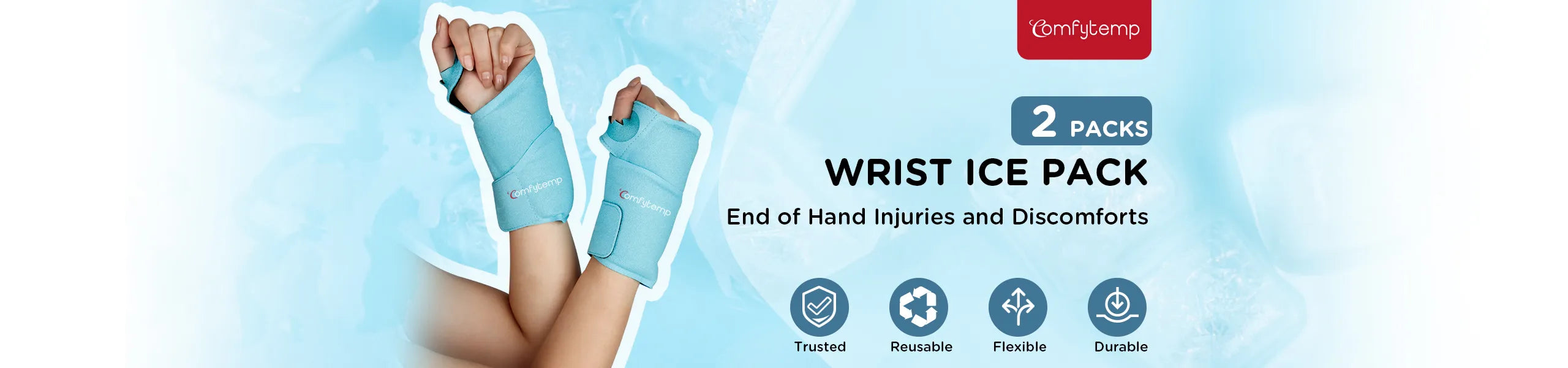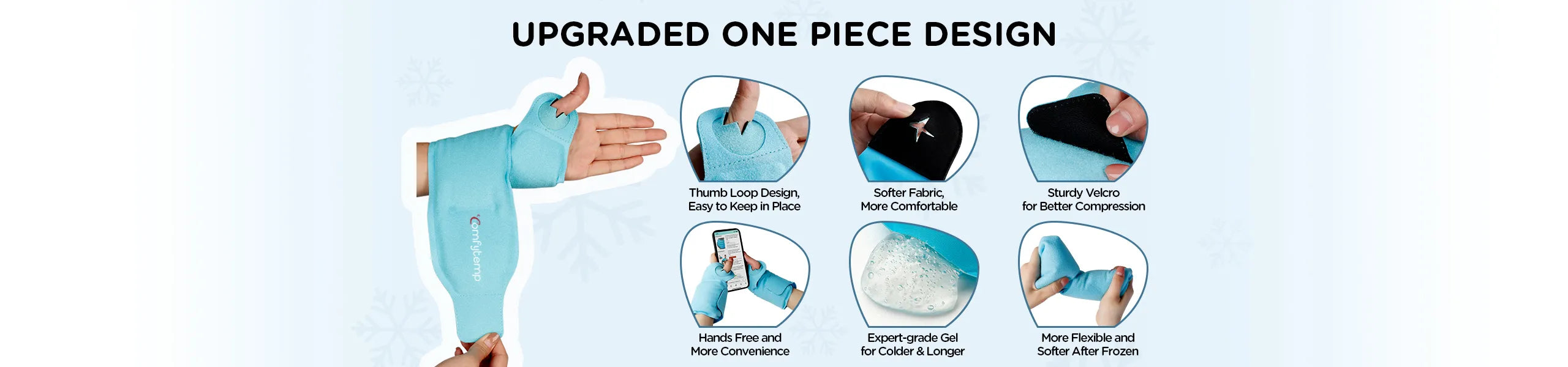 Targeted Wrist Hand Pain Relief: This specially designed Comfytemp wrist ice pack wrap is contoured to the hand perfectly, ensuring maximum effectiveness in relieving hand injuries caused by swelling, sprains, bruises, and inflammation. These ice packs for injuries reusable for wrist provide active pain alleviation for a range of conditions, including rheumatoid arthritis, tendinitis, carpal tunnel pain, sports injuries, muscle pain, etc. Both hot and cold compresses help eliminate fatigue and pain. Upgraded All-in-one Design: Comfytemp's new version of hand ice pack wrap features an upgraded all-in-one design to make it convenient for you to use without additional parts as this wrist wraps features adjustable velcro strips to make the ice pack hug your hands tightly with extra compression and provide a deeper, intense cooling experience. Simply adjust the pressure as you need, and let the wrap do its magic, providing the perfect amount of compression and support to your aching wrist. Outstanding Comfort and Support: Comfort and support are top priorities when it comes to the design of this wrist ice pack wrap. Its unique construction includes a thumb opening, ensuring optimal comfort without compromising functionality. Moreover, the carpal tunnel wrist brace can be easily flipped around for use on either the left or right hand, making it suitable for everyone. Its perfect size can easily fit snugly around the wrist, finger, and palm, providing comprehensive relief to the entire hand area. Expert-grade Gel for Colder and Longer: Comfytemp wrist ice pack filled with expert-grade gel allows the hand ice pack to stay smooth and pliable even when frozen, ensuring deeper and longer-lasting cold therapy, and continue your daily activities. Whether you're at work, home, or indulging in some light reading or phone, this multi-functional wrap has got you covered. Say goodbye to bothersome carpal tunnel pain as our ice pack provides soothing relief that is both effective and enduring. Not Just For Hands: With a set of 2, the benefits extend beyond just the wrist. You can utilize the additional ice pack wrap for various body parts, like arm, ankle, knee, shoulder, neck, face, head, etc. If you're experiencing neck pain, you can easily attach both ice wraps together and transform them into a comfortable neck ice pack. The versatility of this wrist ice wrap truly knows no bounds, ensuring that you have a reliable and convenient solution for all your aches and pains.